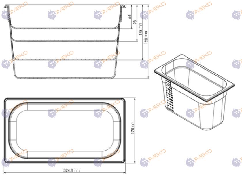 Съд по гастронорм, поликарбонат GN 1/3-150